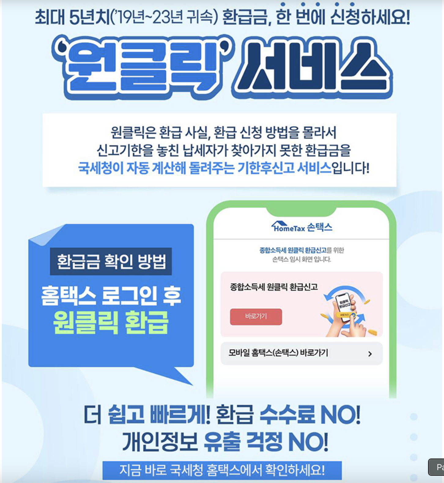 비용 부담 없이, 안전하게, 클릭 한 번이면 끝나는 환급 신청.