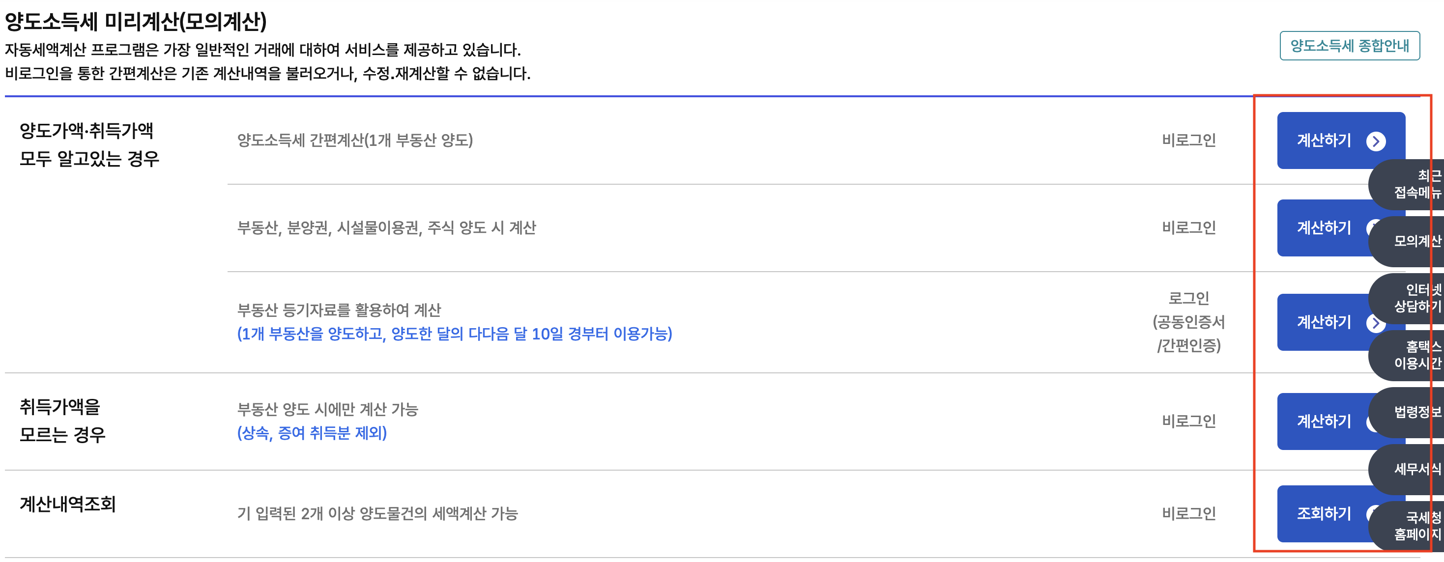 1. 양도소득세 자동계산 방법 (로그인 필요 X)