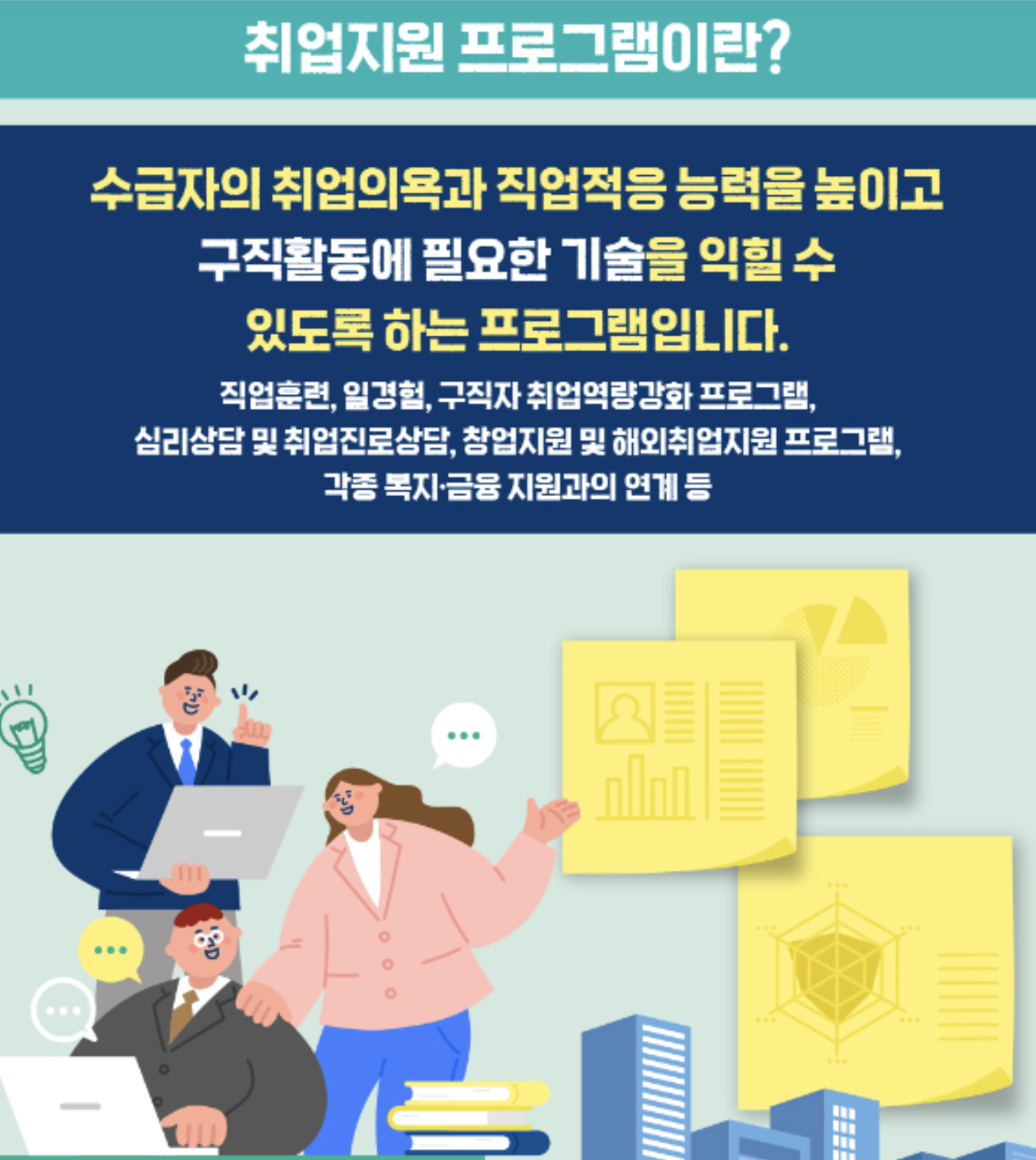 구직자에게 맞춤형 취업지원서비스와 생계지원을 함께 제공함으로써 실질적인 취업 가능성을 높이기 위한 국가 정책입니다.