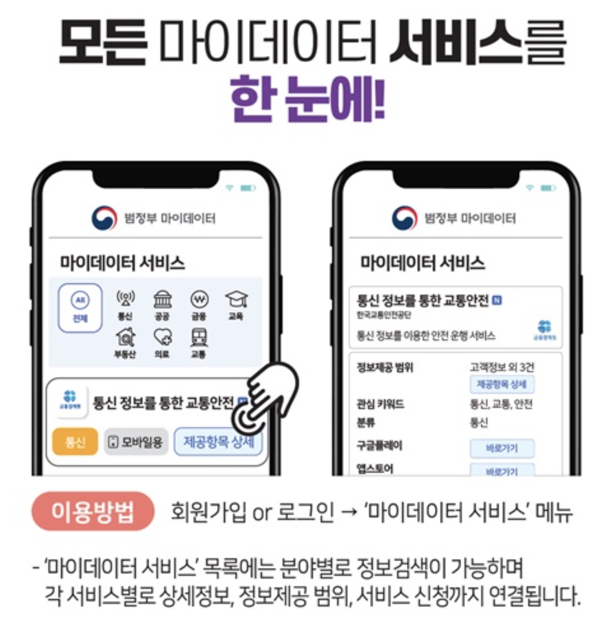 이제는 공공·금융·통신 등 여러 분야에 흩어져 있는 정보 전송 이력을 한곳에서 통합 관리하고 전송 철회 및 서비스 이용까지 원스톱으로 진행할 수 있게 되었습니다.